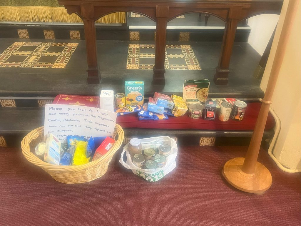 All students from each class joined a queue in the aisle and individually slid across the organ seat and played three notes across the keyboard, assisted by Sharon, Wendy and Elizabeth. All the students were wonderful ambassadors for Coromandel Valley Primary School, and we are very grateful for their contribution to our collection of food for the Mary Magdalen Centre, for distribution to those in need.